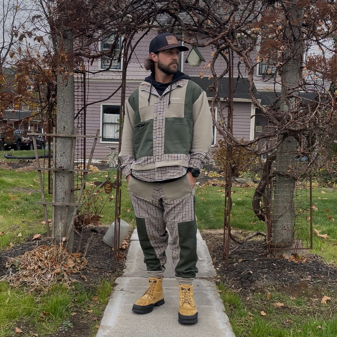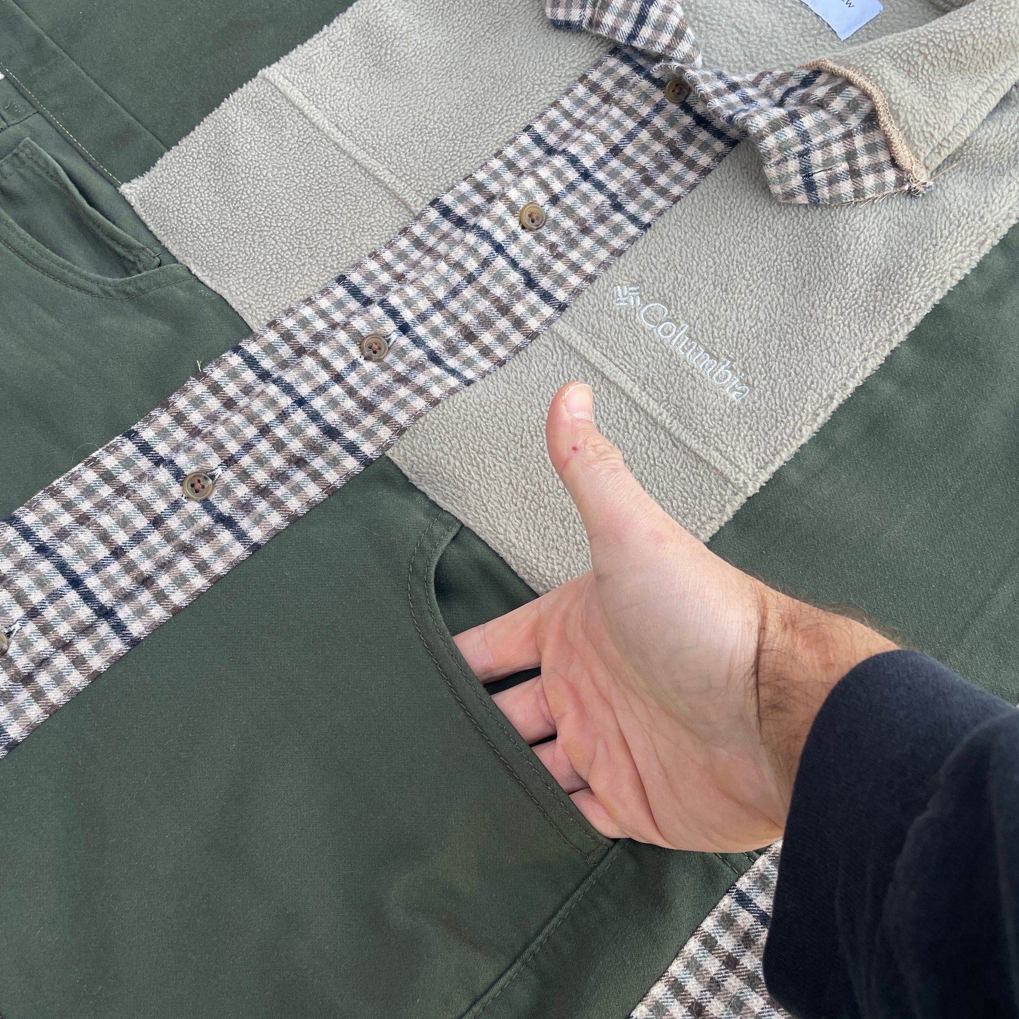 This 1 of 1 design was created and inspired by Columbia Brand with the addition of a standard flannel shirt and pair of chino pants that were all hand-selected and thrifted locally in my area. Everything gets deconstructed and reworked into this super unique twist on a classic design with a more oversized and relaxed fit representing the Necoda Matthew Design style and look. This is part of a matching set, sold separately.